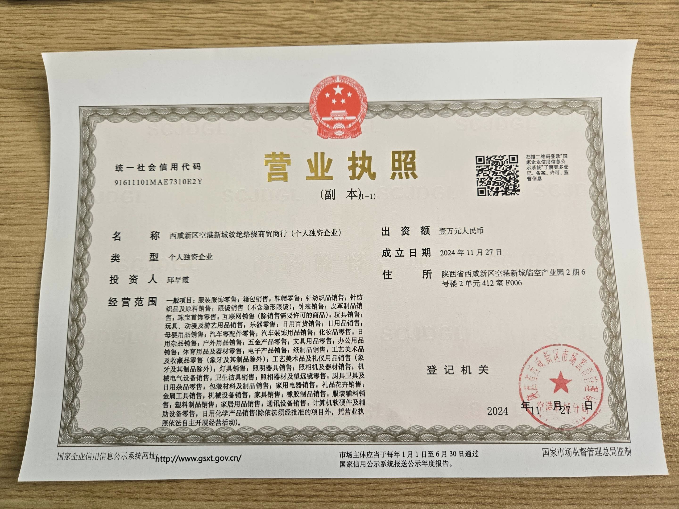会社名:西咸新区空港新城绞绝络绕商贸商行(个人独资企业)